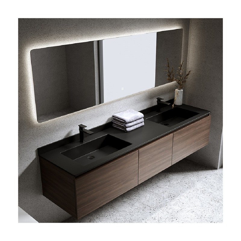 목재 현대 스타일의 맞춤형 폭과 직사각형의 이중 싱크 욕실 비결 24