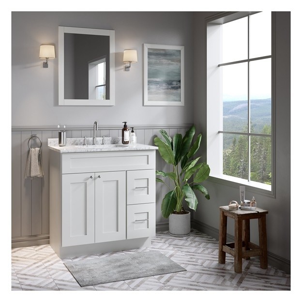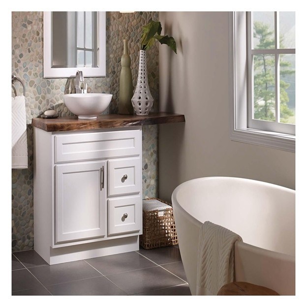 흰색 라크 문 패널과 단단한 목재 구조와 함께 단일 욕실 바니티 24