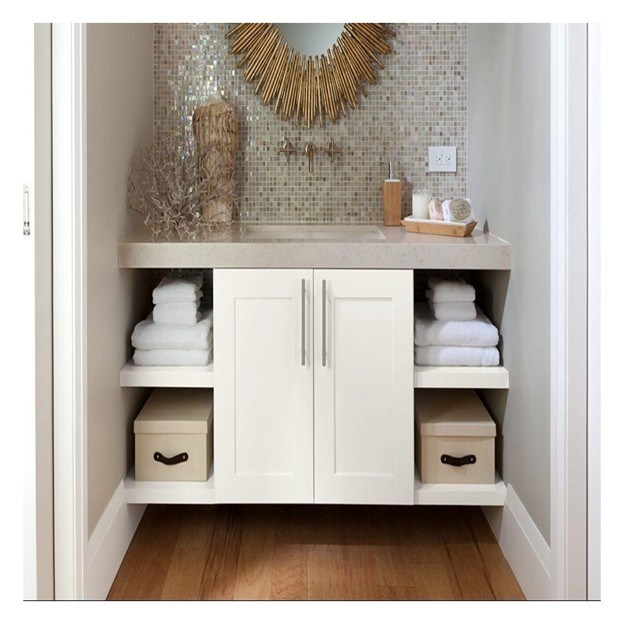 흰색 라크 문 패널과 단단한 목재 구조와 함께 단일 욕실 바니티 18