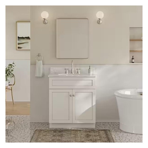 흰색 라크 문 패널과 단단한 목재 구조와 함께 단일 욕실 바니티 26
