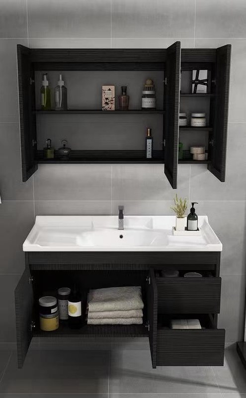 현대 스타일 독일 하얀색 목조 욕실 캐비닛과 가벼운 세탁기 9